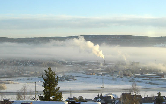 I større bykjerner fører boligoppvarming og bilkjøring til at det nederste luftlaget blir noe oppvarmet og blandet, slik at temperaturfallet reduseres. Dermed kan inversjonen forsvinne i det helt nederste laget.