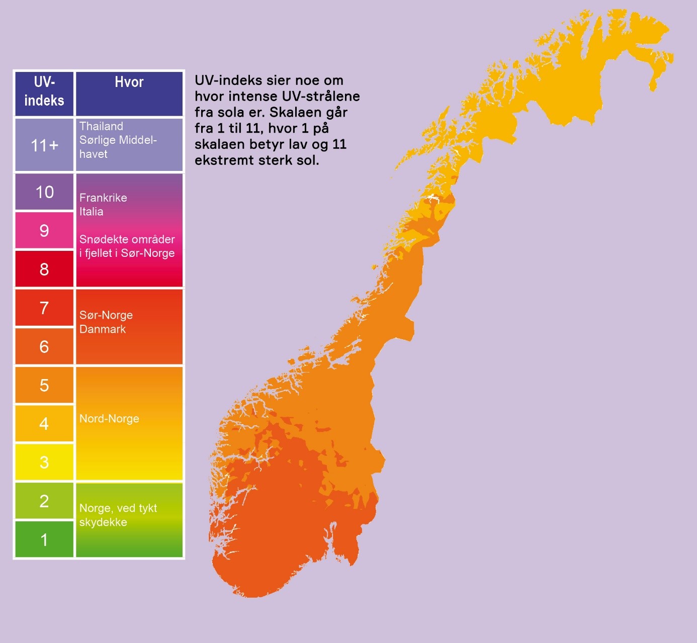 UV-varsler for ulike steder i Norge tre dager frem i tid finnes på yr.no eller på uv.nilu.no.